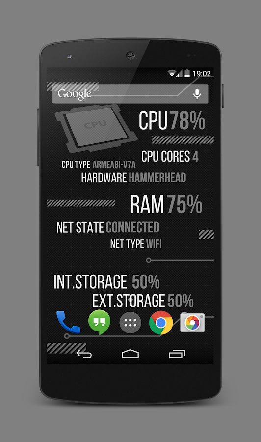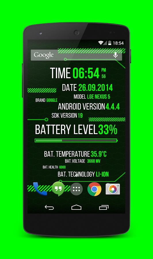 It is a live wallpaper that shows several informations about your mobile device.